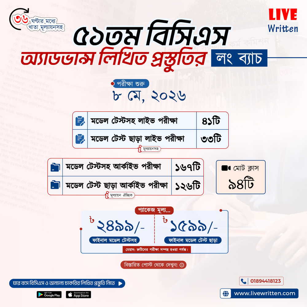 আপনার সরকারি চাকুরী প্রস্তুতির যাত্রা আরেকটু সহজ করতে Live Written™ টিম সর্বত্র আপনার পাশে আছে।