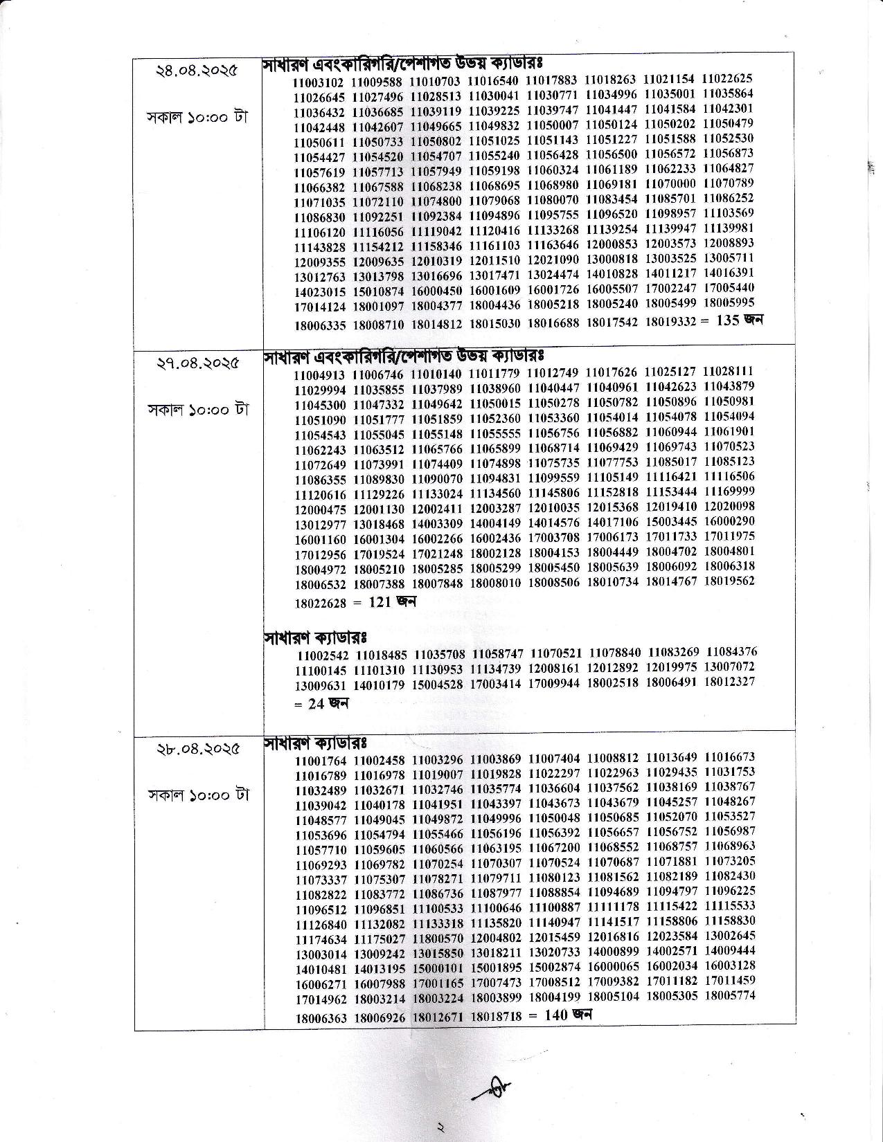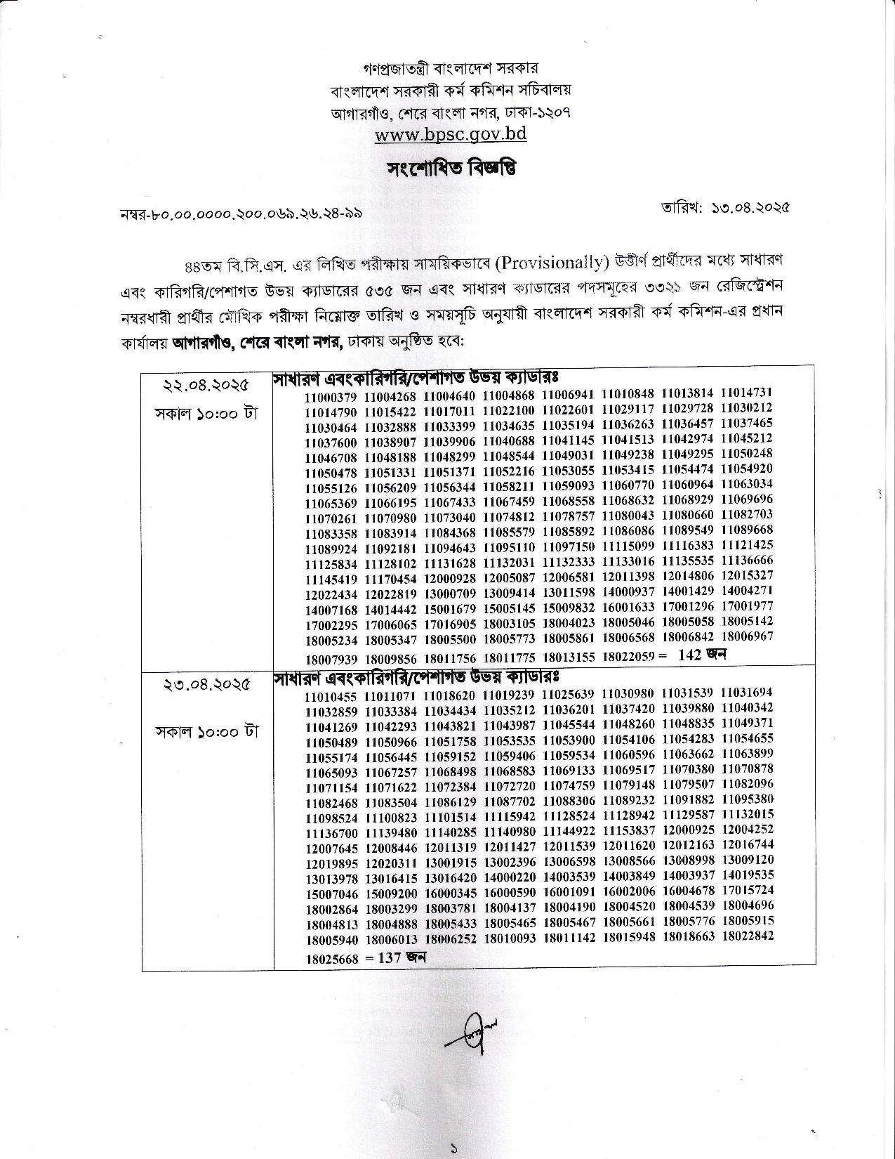 প্রিয় চাকরির প্রত্যাশীগণ আপনাদের অবগতির জন্য জানানো যাচ্ছে যে, ৫ম ধাপে ৪৪তম বিসিএস Both Cadre এর ৩৮৫৬ জন প্রার্থীর মৌখিক পরীক্ষার তারিখ (সংশোধিত) প্রকাশিত হয়েছে। বিসিএস মৌখিক পরীক্ষার তারিখ সংক্রান্ত বিজ্ঞপ্তি অনুসারে ৪৪তম বিসিএস সাধারণ এবং কারিগরি / পেশাগত উভয় ক্যাডার পদসমূহের জন্য সর্বমোট ৫৮৬২ জন প্রার্থীর মধ্য থেকে ৬ষ্ঠ পর্যায়ে কারিগরি / পেশাগত উভয় ক্যাডারের ৫৩৫ জন এবং সাধারণ ক্যাডারের পদসমূহের ৩৩২১ জন প্রার্থীর মৌখিক পরীক্ষা আগামী ২২ এপ্রিল ২০২৫ তারিখ শুরু হবে। যা চলবে আগামী ১৬ জুন ২০২৫ তারিখ পর্যন্ত। বাংলাদেশ সরকারী কর্ম কমিশন – এর প্রধান কার্যালয় আগারগাও, শেরে বাংলা নগর, ঢাকায় নির্দিষ্ট তারিখ অনুসারে প্রার্থীদের মৌখিক পরীক্ষা অনুষ্ঠিত হবে।