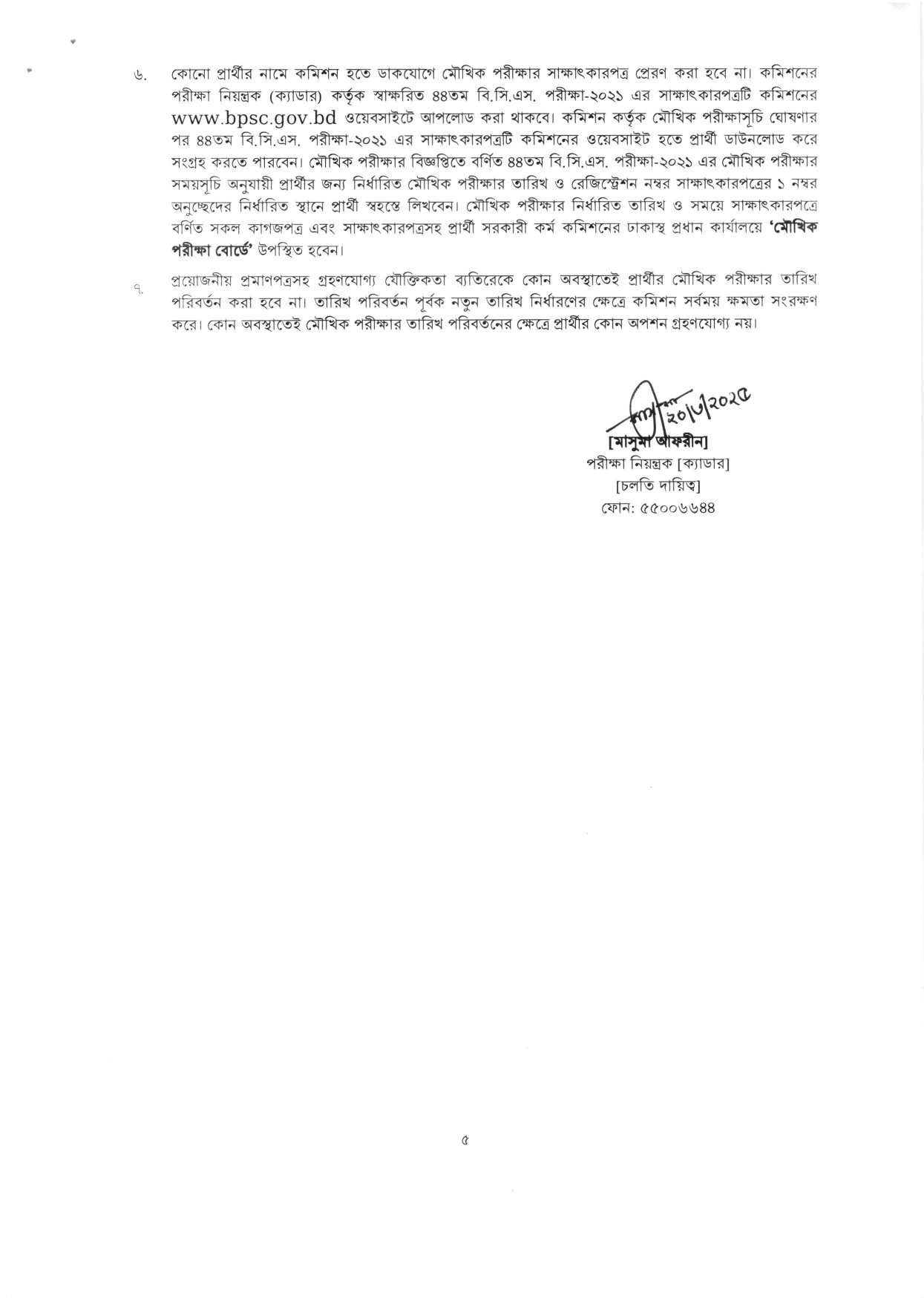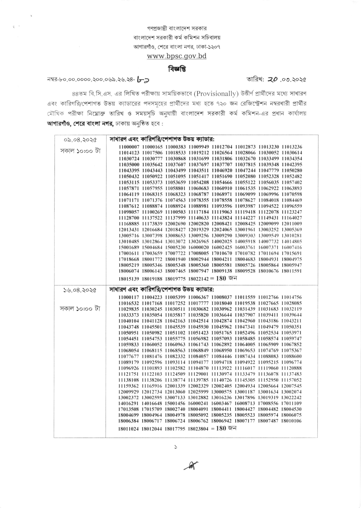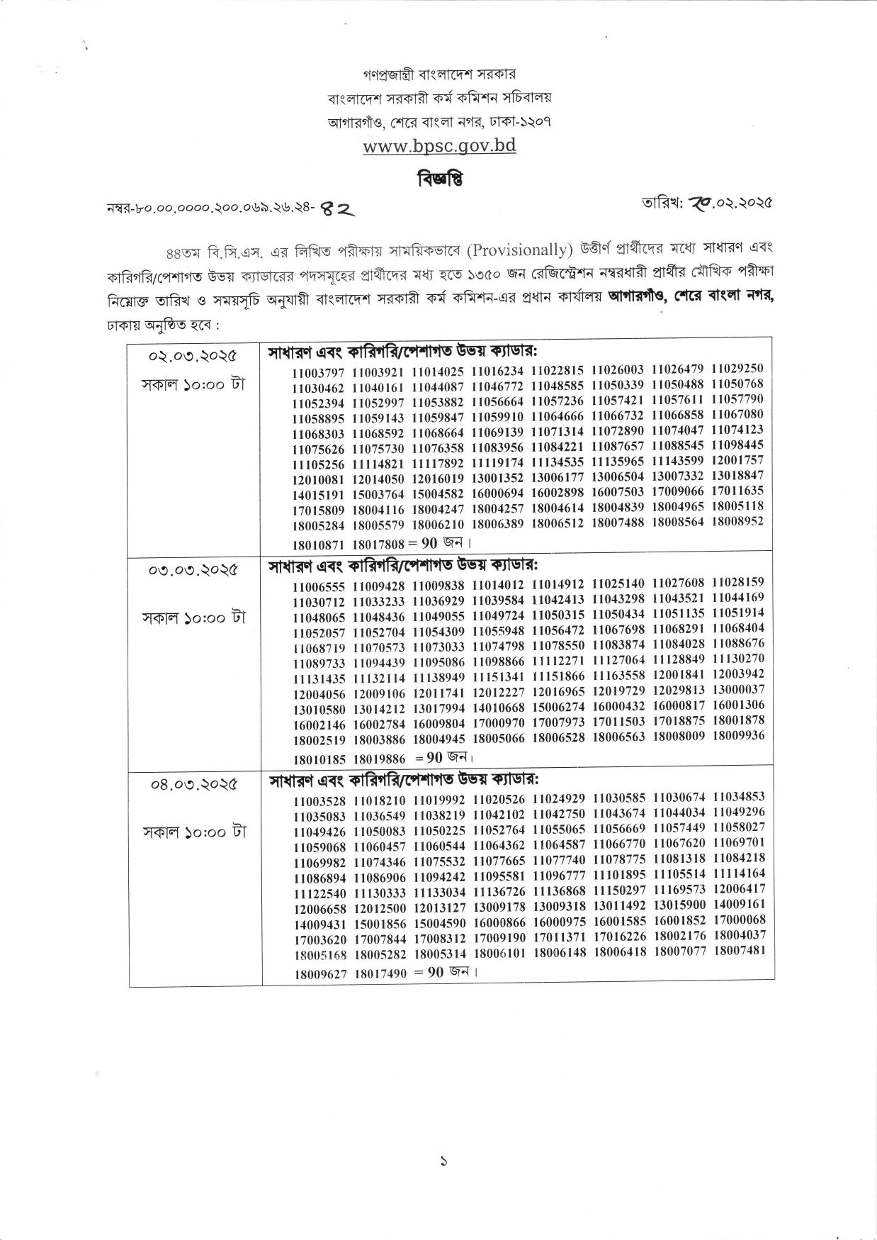 ৪৪তম বিসিএস Both Cadre প্রার্থীদের মৌখিক পরীক্ষার তারিখ