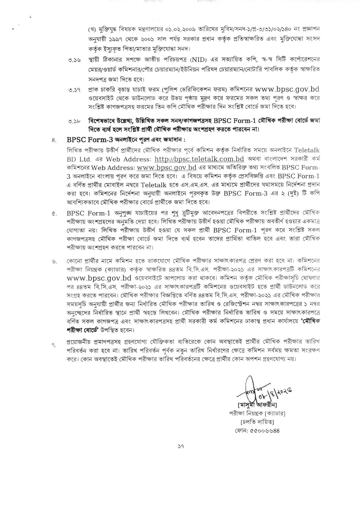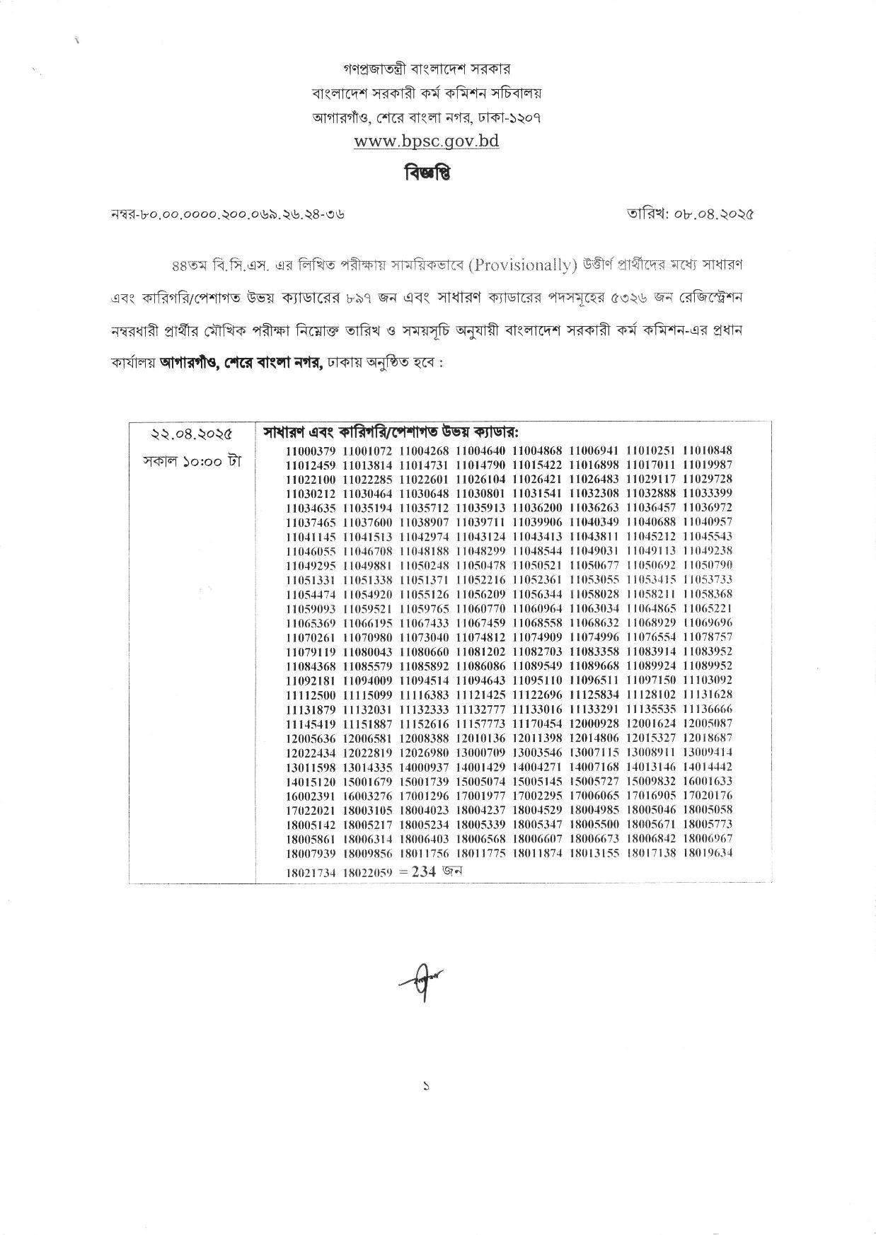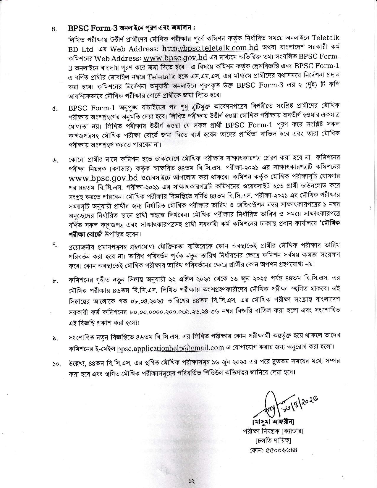 ৪৪তম বিসিএস Both Cadre প্রার্থীদের মৌখিক পরীক্ষার তারিখ