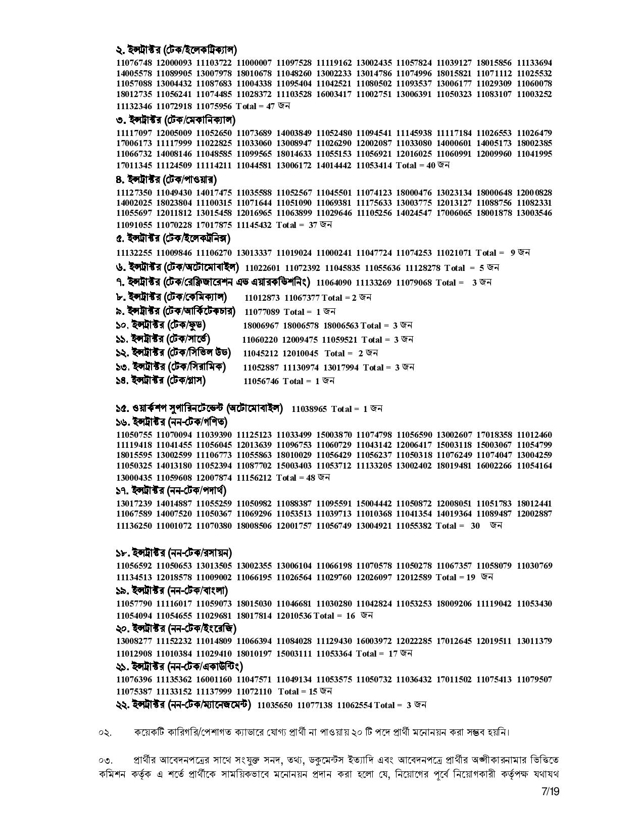 - যাদের কাগজপত্র বা সনদ যাচাইয়ে সমস্যা রয়েছে, তারা সাময়িকভাবে সুপারিশপ্রাপ্ত হয়েছেন এবং নিয়োগকারী কর্তৃপক্ষ যাচাই শেষে চূড়ান্ত সিদ্ধান্ত গ্রহণ করবেন।