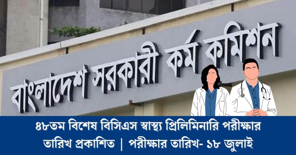 ৪৮তম বিশেষ বিসিএস স্বাস্থ্য প্রিলিমিনারি পরীক্ষার তারিখ প্রকাশিত | পরীক্ষার তারিখ- ১৮ জুলাই