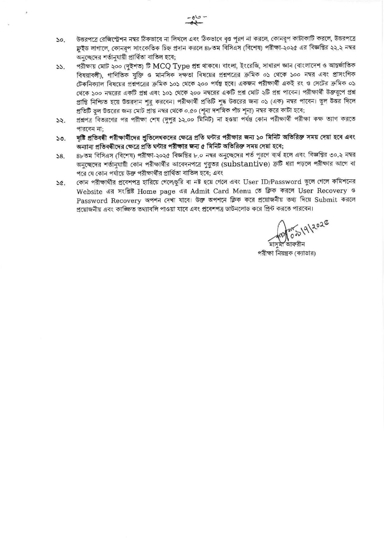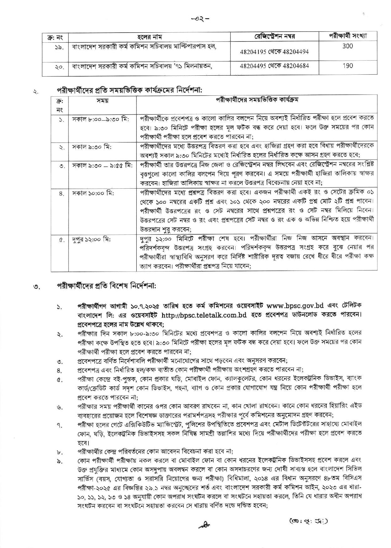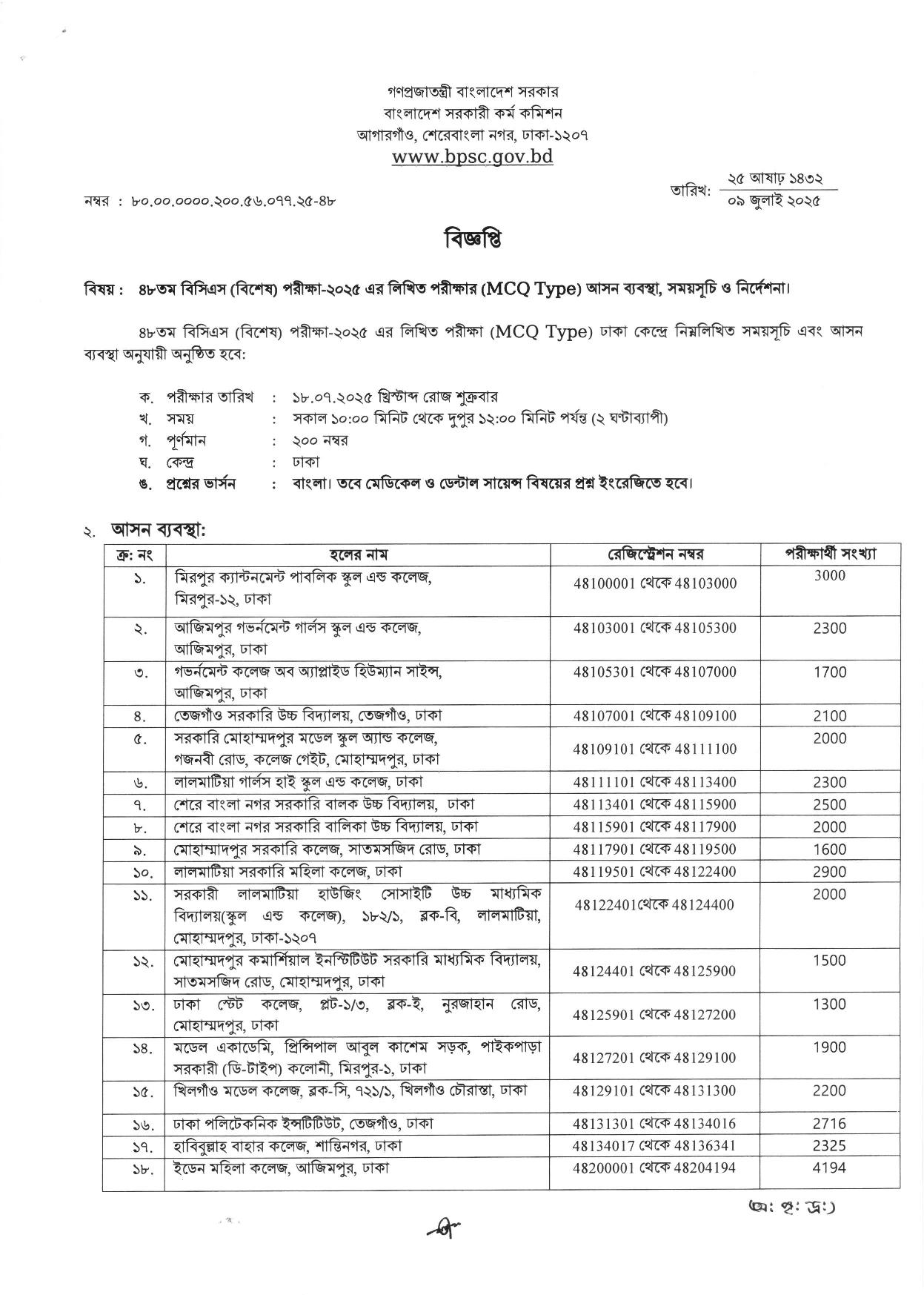 ৪৮তম স্পেশাল বিসিএস পরীক্ষার আসন ব্যবস্থা, সময়সূচি ও নির্দেশনা