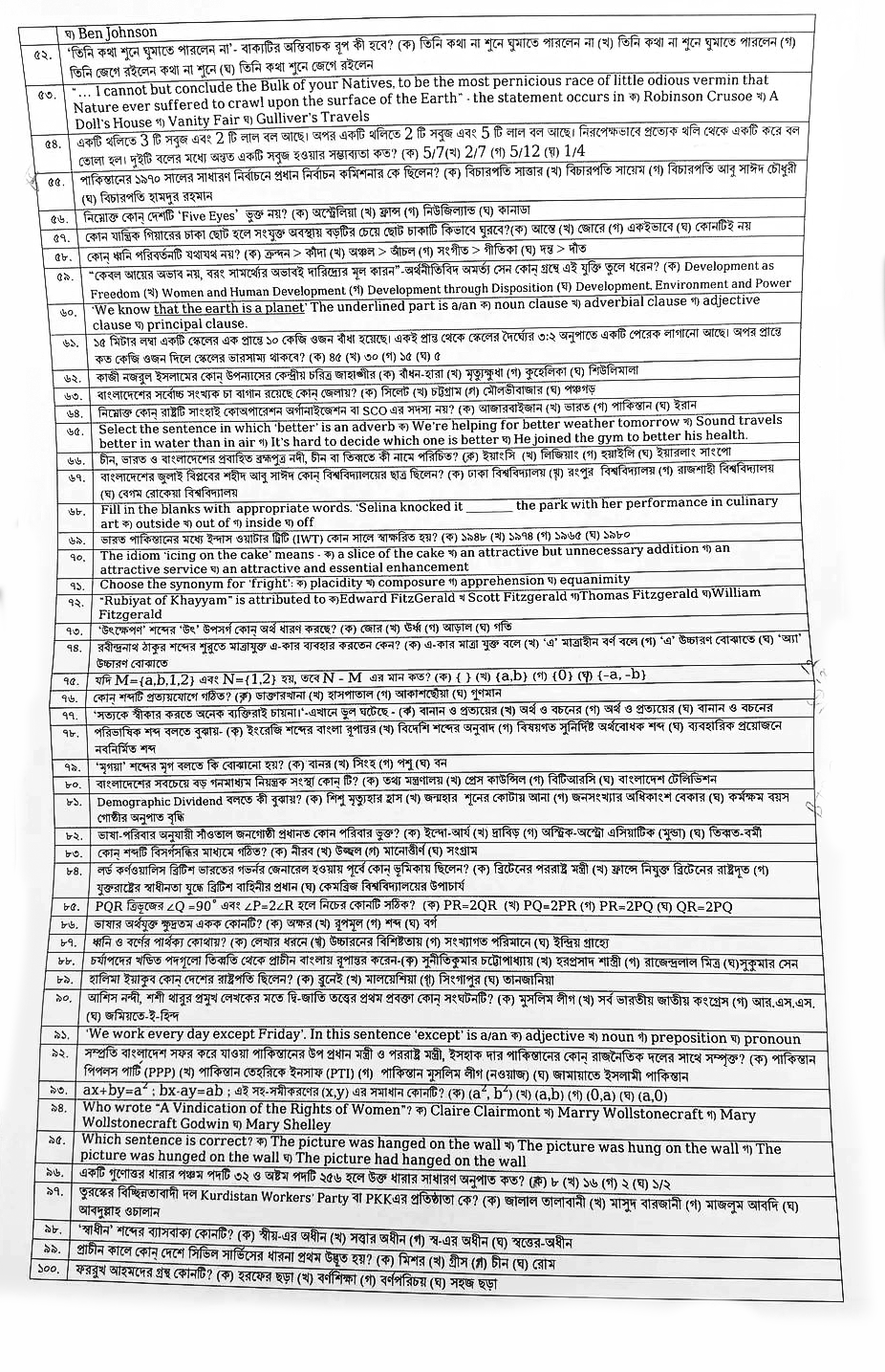 ৪৯তম বিশেষ বিসিএস পরীক্ষার প্রশ্ন – জেনারেল পার্ট