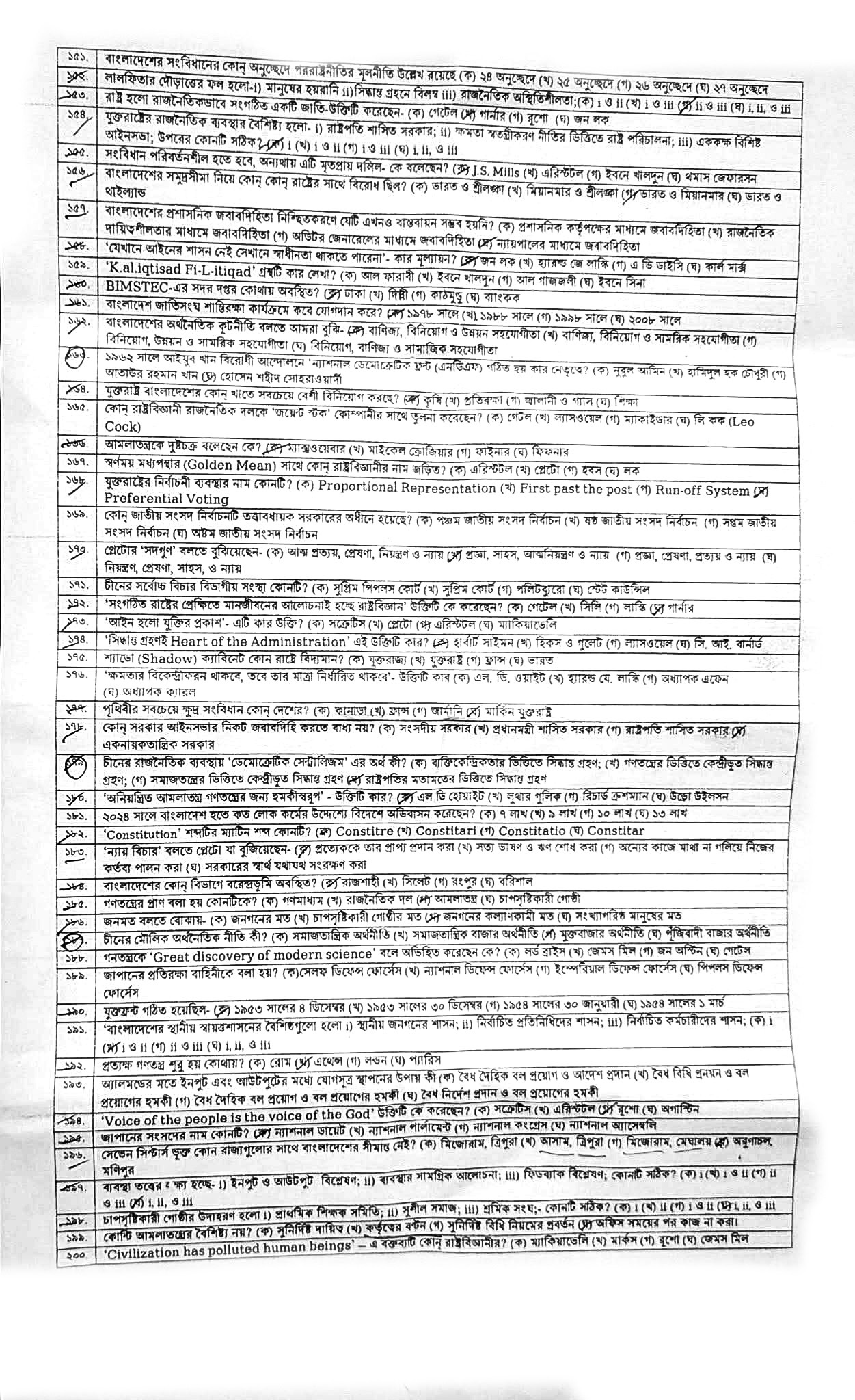 ৪৯তম বিশেষ বিসিএস রাষ্ট্র বিজ্ঞান পরীক্ষার প্রশ্ন