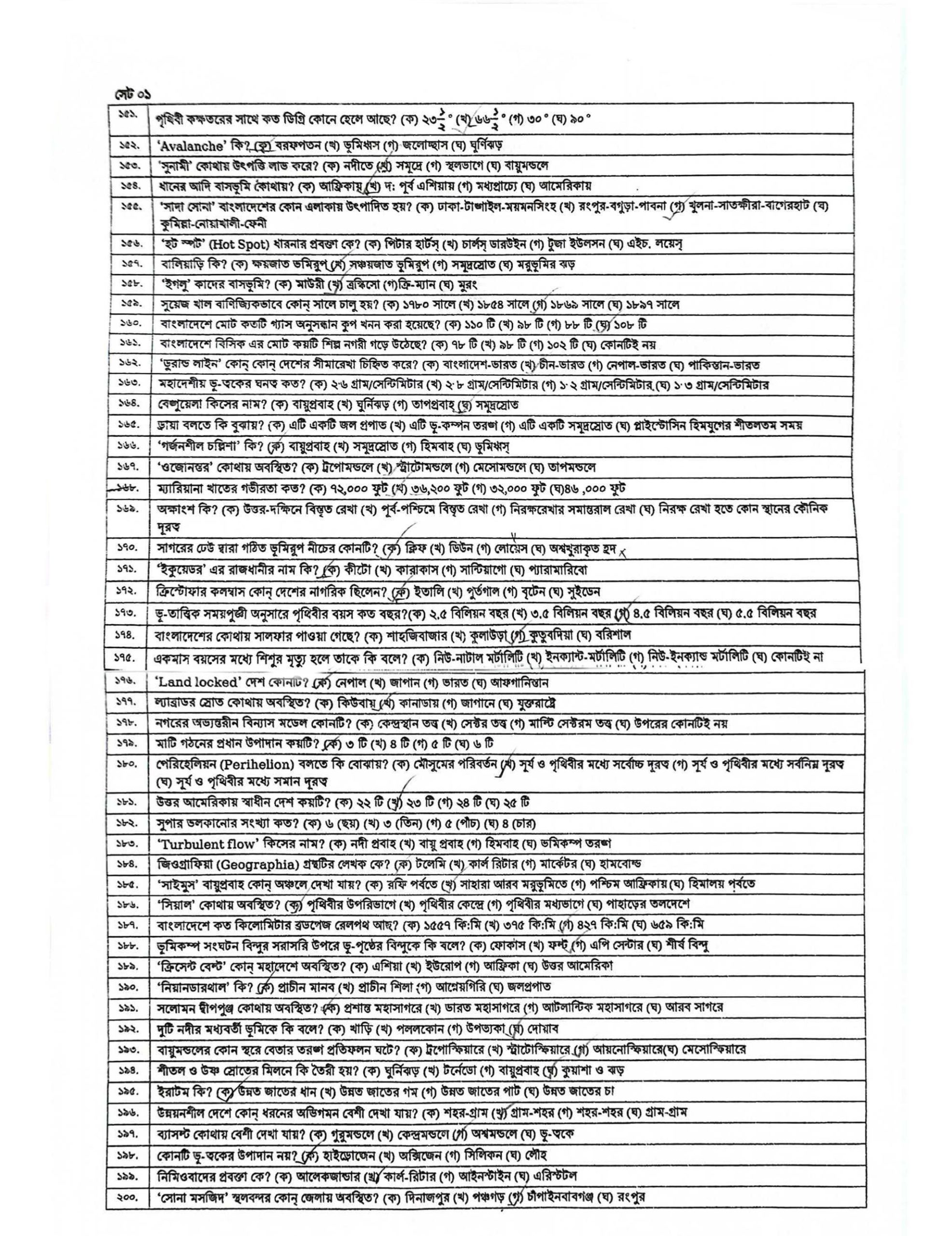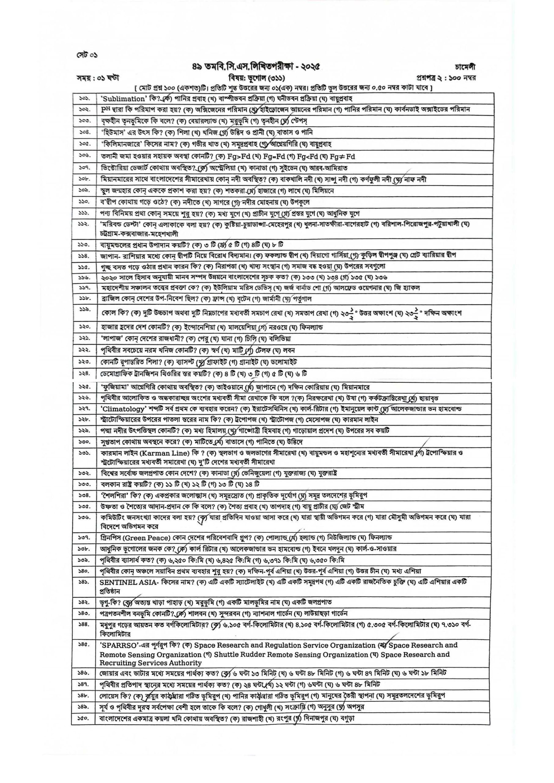 ৪৯তম বিশেষ বিসিএস ভূগোল পরীক্ষার প্রশ্ন