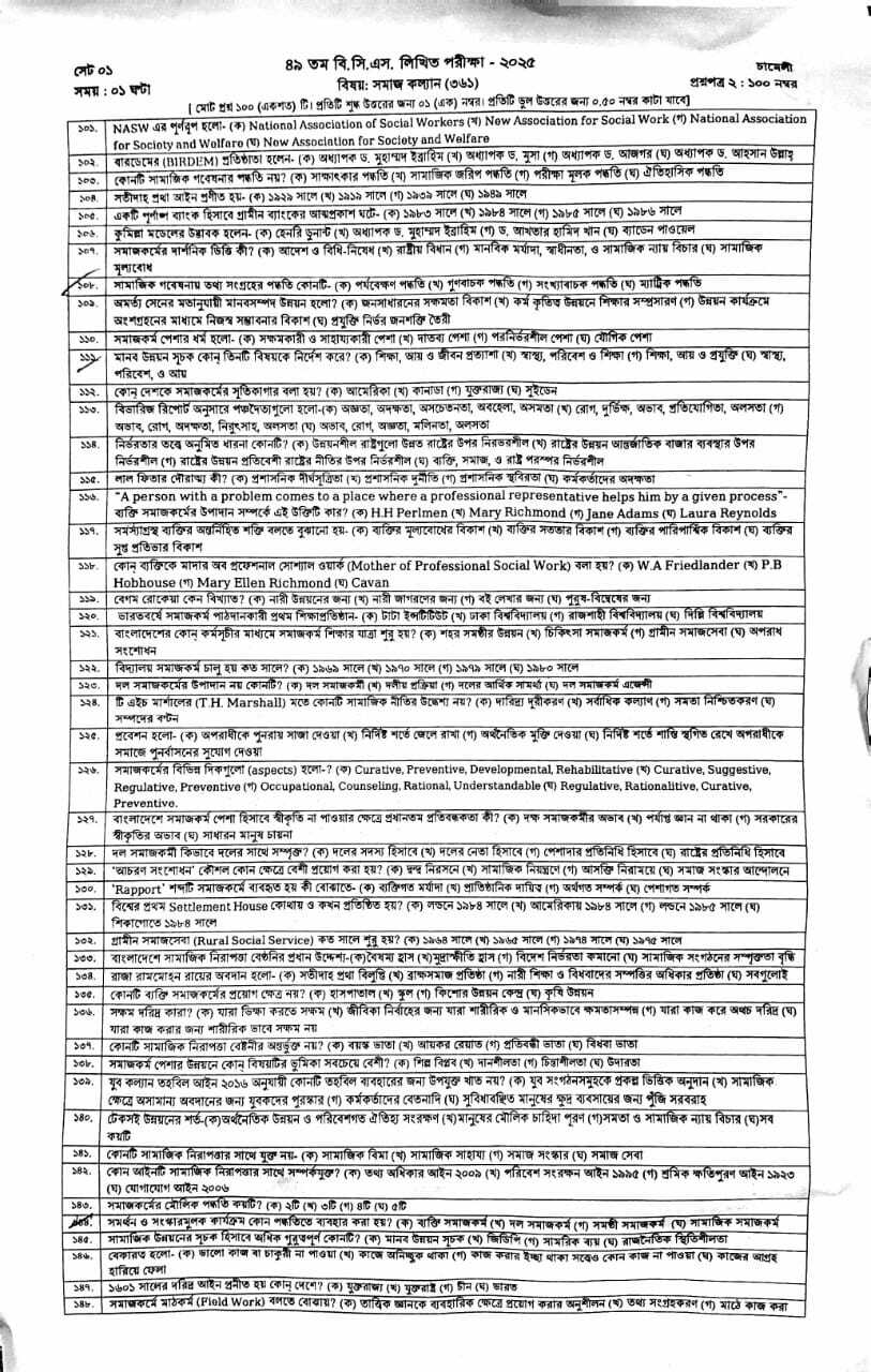 ৪৯তম বিশেষ বিসিএস সমাজ কল্যান পরীক্ষার প্রশ্ন