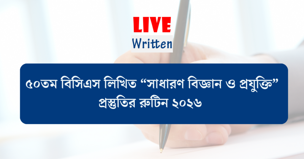 ✍️ আমাদের বিশ্বাস, Live Written ৫০তম বিসিএস লিখিত “সাধারণ বিজ্ঞান ও প্রযুক্তি” রুটিন আপনার প্রস্তুতিকে করবে আরও আত্মবিশ্বাসী ও ফলপ্রসূ।