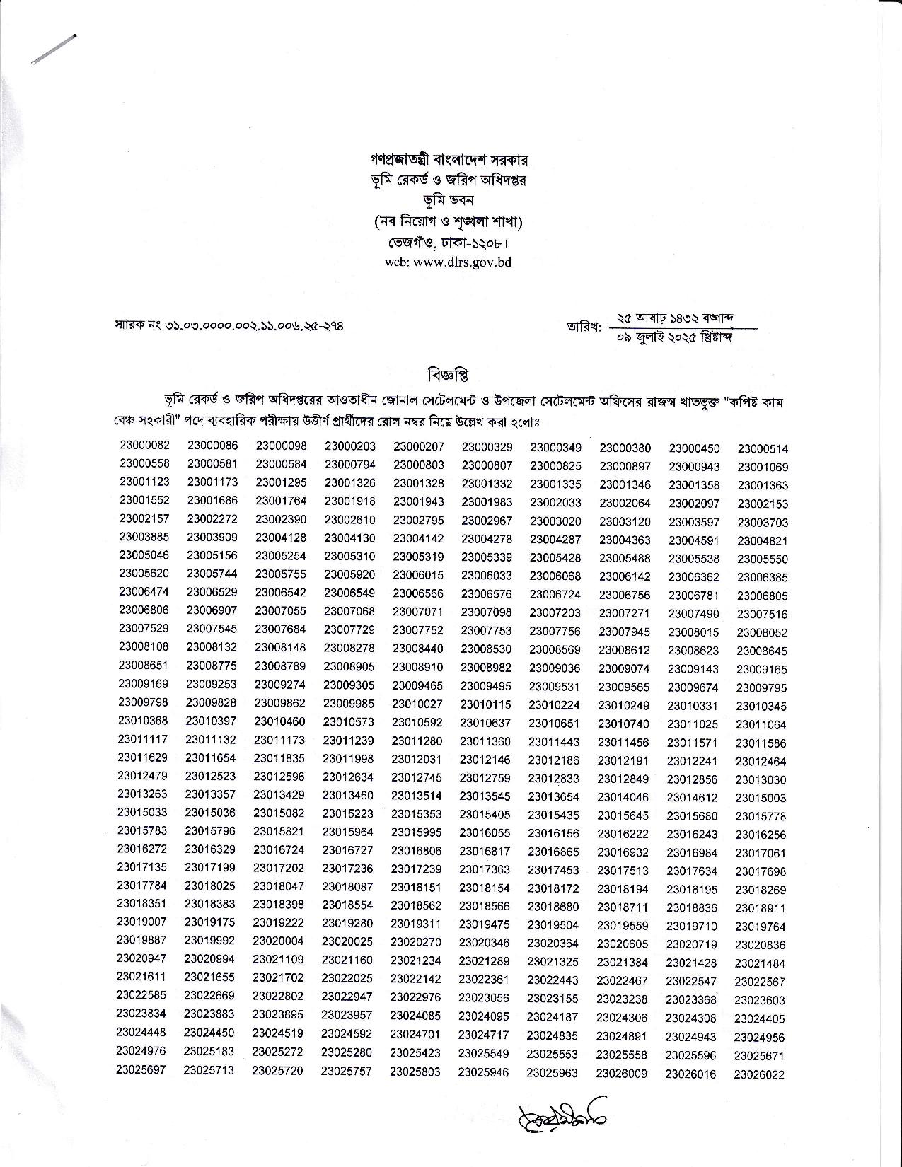 ভূমি রেকর্ড ও জরিপ অধিদপ্তরের ব্যবহারিক পরীক্ষার ফলাফল । কপিষ্ট কাম বেঞ্চ সহকারী