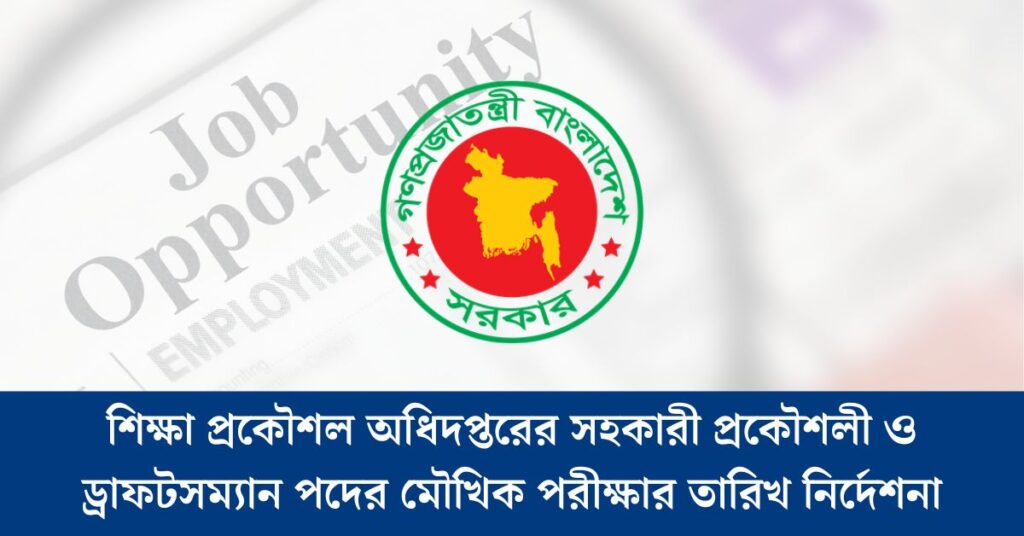 শিক্ষা প্রকৌশল অধিদপ্তরের সহকারী প্রকৌশলী ও ড্রাফটসম্যান পদের মৌখিক পরীক্ষার তারিখ