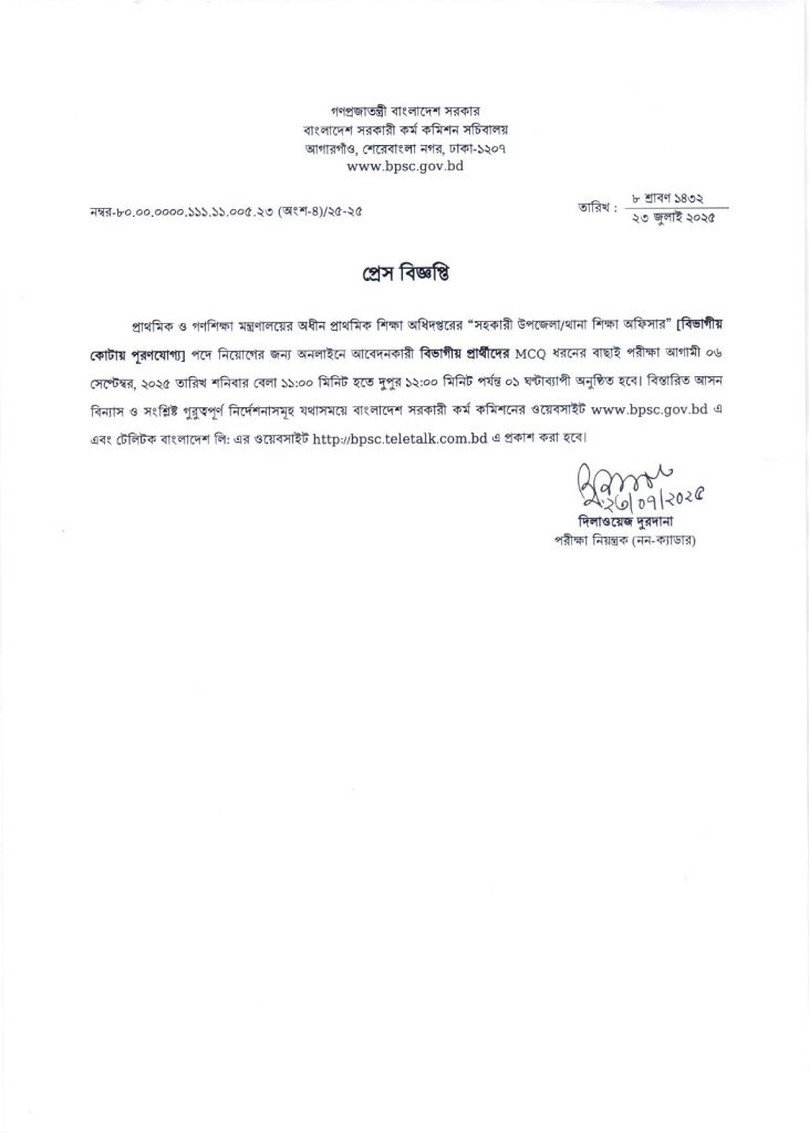 - পরীক্ষার তারিখ: ৬ সেপ্টেম্বর ২০২৫ (শনিবার)