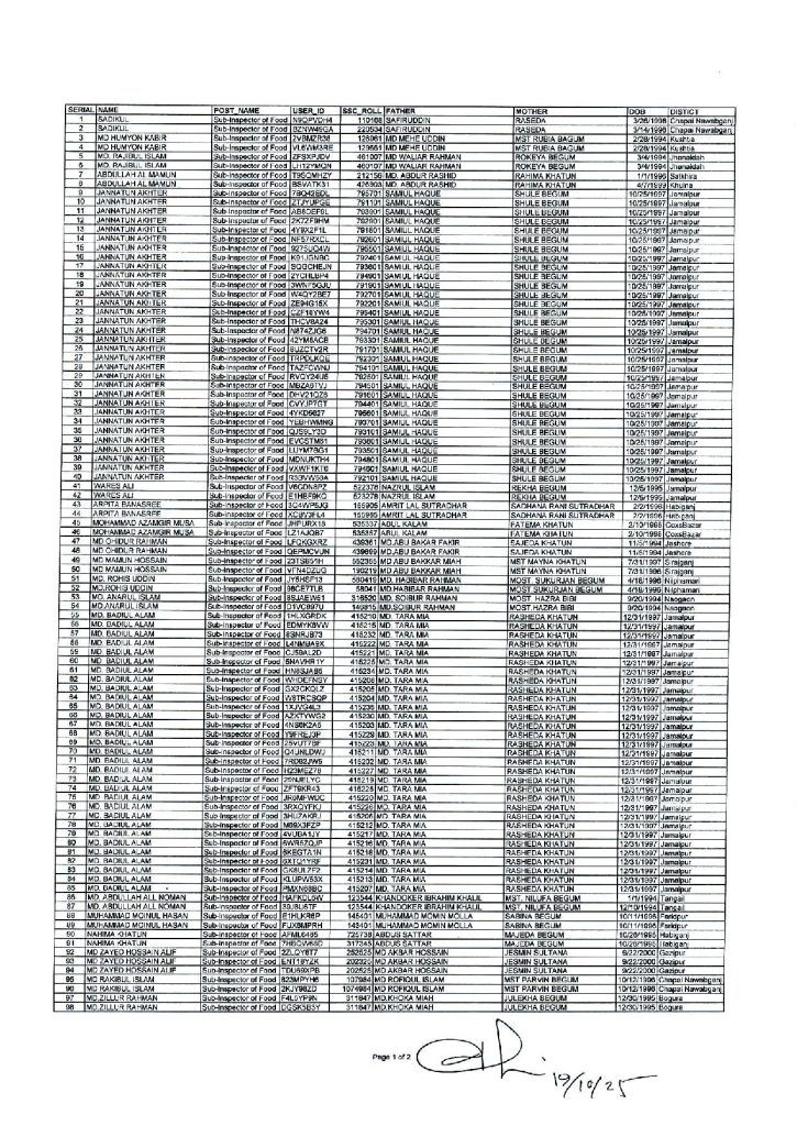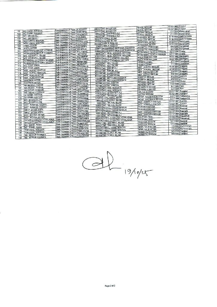 খাদ্য অধিদপ্তর উপ-খাদ্য পরিদর্শক প্রিলি পরীক্ষার সময়সূচি ২০২৫