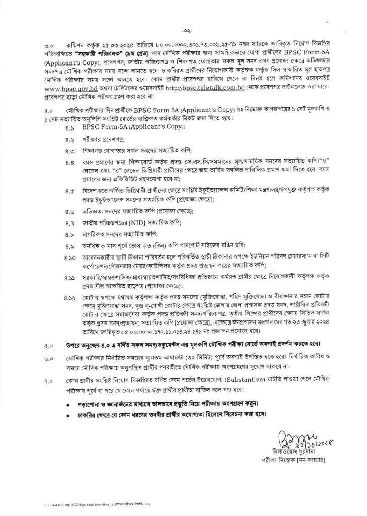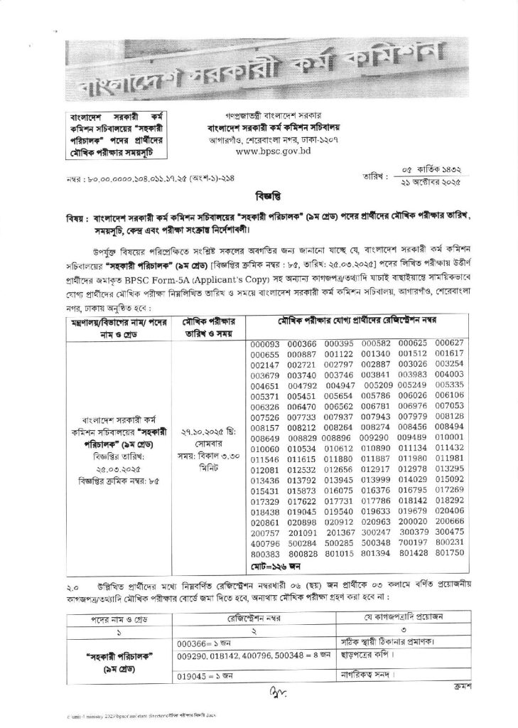 পিএসসি সহকারী পরিচালক মৌখিক পরীক্ষার তারিখ ও নির্দেশনা ২০২৫ দেখুন