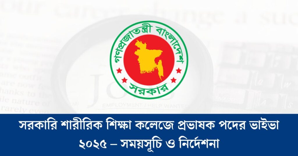সরকারি শারীরিক শিক্ষা কলেজে প্রভাষক পদের ভাইভা ২০২৫ – সময়সূচি ও নির্দেশনা দেখুন