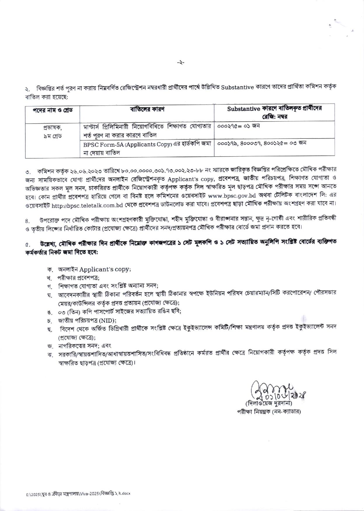 ভাইভার দিন প্রার্থীদের নিচের ডকুমেন্টস অবশ্যই সঙ্গে রাখতে হবে: