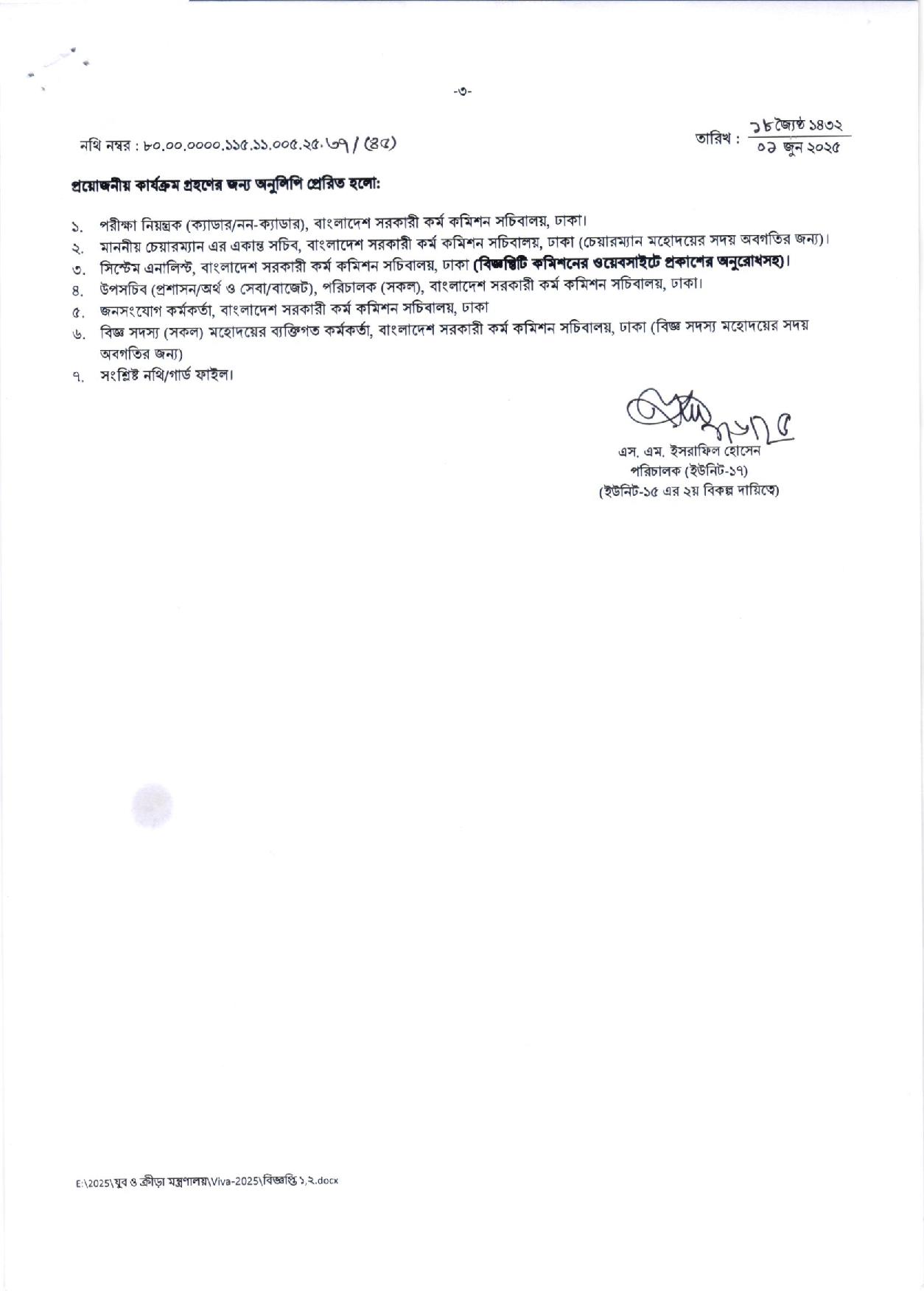 স্থান: বাংলাদেশ সরকারী কর্ম কমিশন সচিবালয়, আগারগাঁও, শেরেবাংলা নগর, ঢাকা।