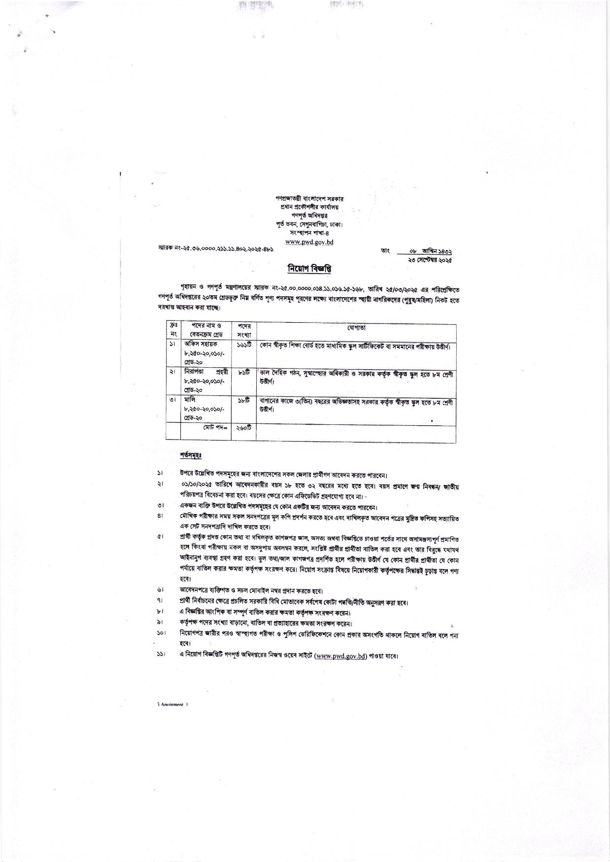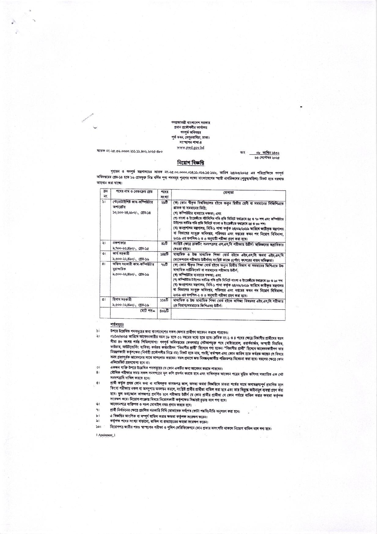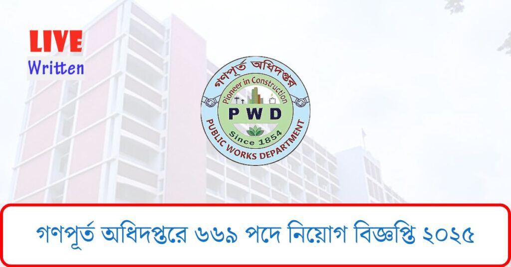 গণপূর্ত অধিদপ্তরে ৬৬৯ পদে নিয়োগ বিজ্ঞপ্তি ২০২৫