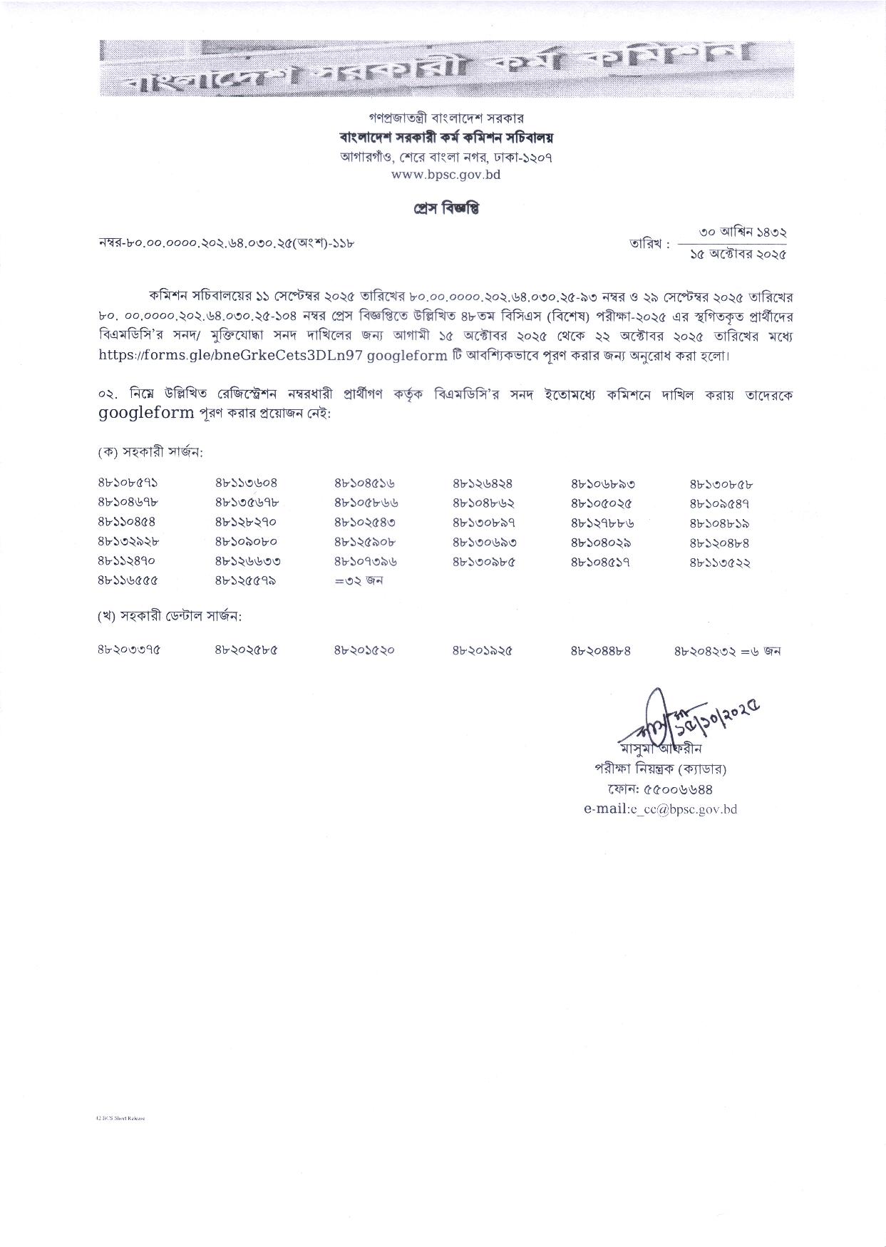 ৪৮তম বিসিএস স্বাস্থ্য পরীক্ষা ২০২৫: স্থগিত প্রার্থীদের সনদ দাখিল সংক্রান্ত বিজ্ঞপ্তি দেখুন