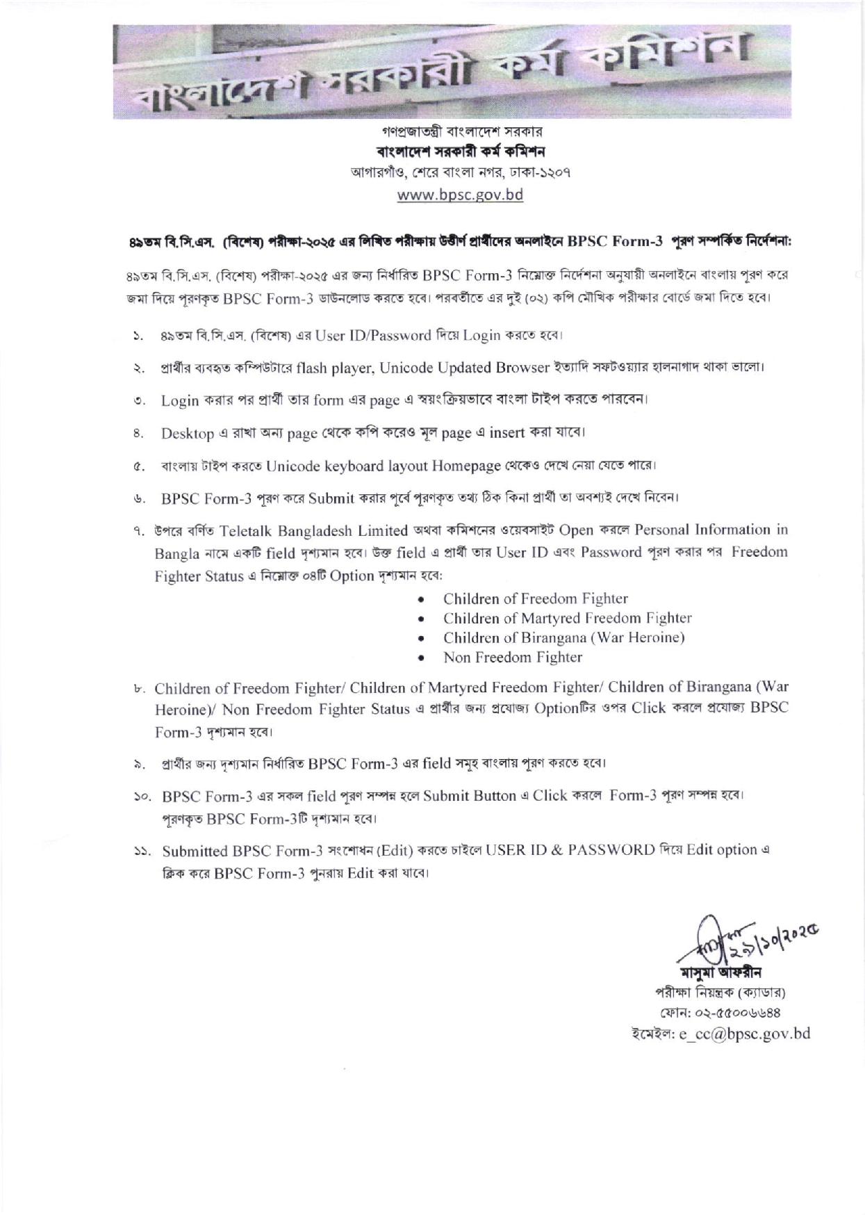 ৪৯তম বিসিএস মৌখিক পরীক্ষার্থীদের জন্য BPSC Form-3 পূরণের নির্দেশনা