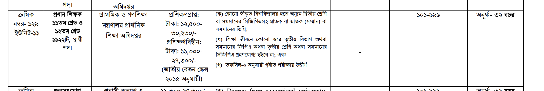 প্রিয় চাকরির প্রত্যাশীগণ, আপনাদের অবগতির জন্য জানানো যাচ্ছে যে, আপনাদের জন্য সুখবর! সম্প্রতি ১১২২ পদে প্রাথমিক বিদ্যালয়ের প্রধান শিক্ষক নিয়োগ বিজ্ঞপ্তি ২০২৫ প্রকাশিত হয়েছে। ৩১ আগস্ট, ২০২৫ তারিখে বাংলাদেশ সরকারি কর্ম কমিশন সচিবালয় কর্তৃক এই নিয়োগ বিজ্ঞপ্তি প্রকাশিত হয়। বিজ্ঞপ্তি অনুযায়ী, প্রশিক্ষণপ্রাপ্ত শিক্ষকদের জন্য ১১তম গ্রেড এবং প্রশিক্ষণবিহীনদের জন্য ১২তম গ্রেড নির্ধারণ করা হয়েছে (জাতীয় বেতন স্কেল ২০১৫ অনুযায়ী)।