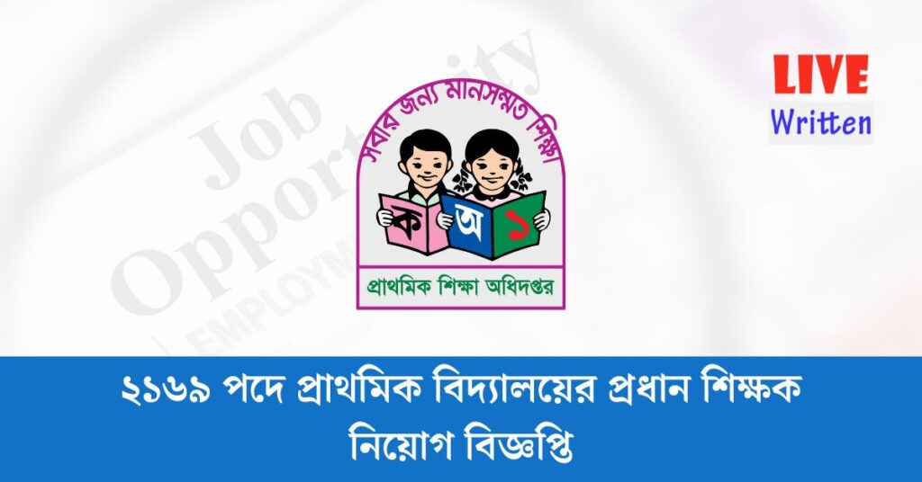 ২১৬৯ পদে প্রাথমিক বিদ্যালয়ের প্রধান শিক্ষক নিয়োগ বিজ্ঞপ্তি