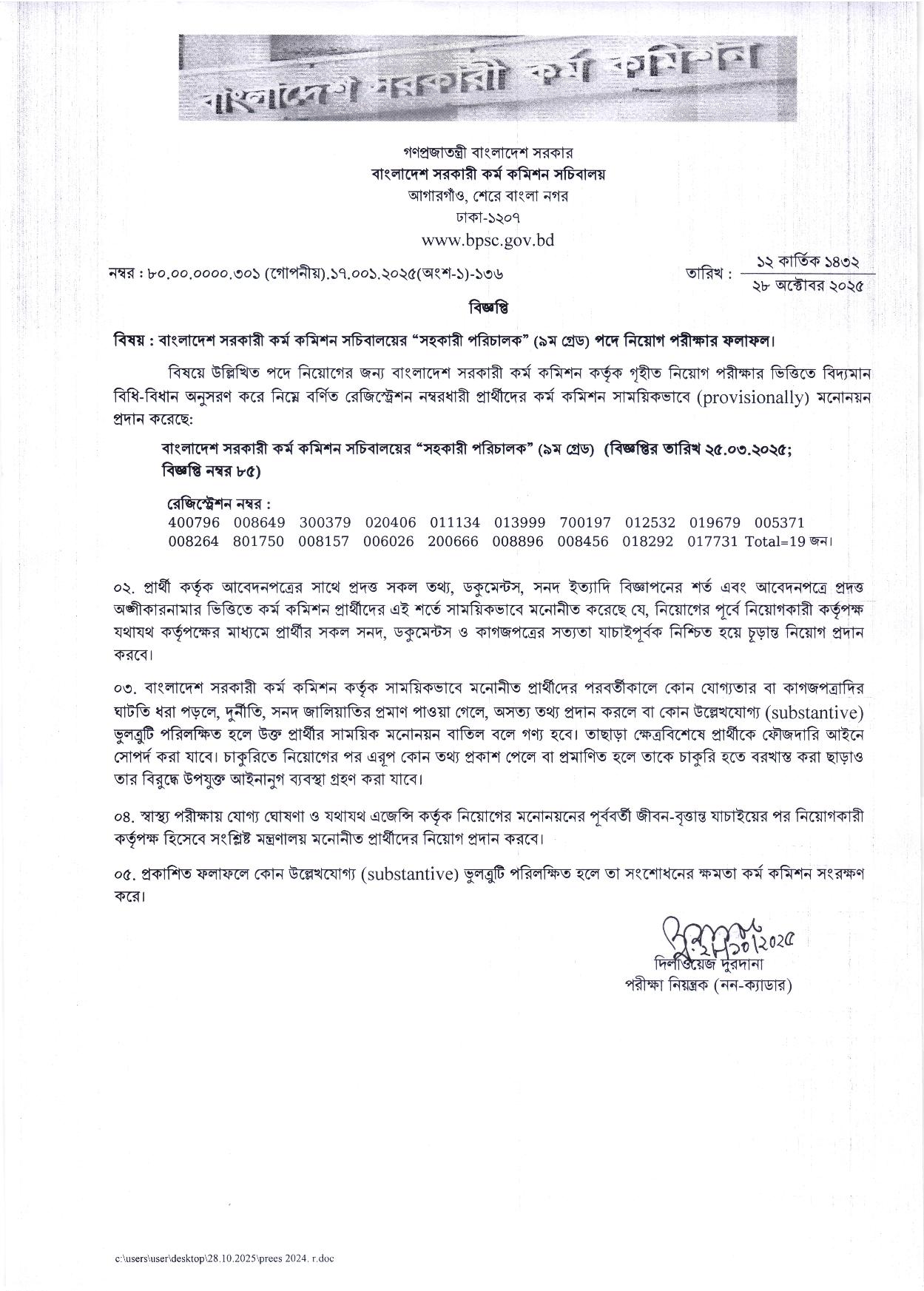 পিএসসি সহকারী পরিচালক পদের চূড়ান্ত ফলাফল ২০২৫