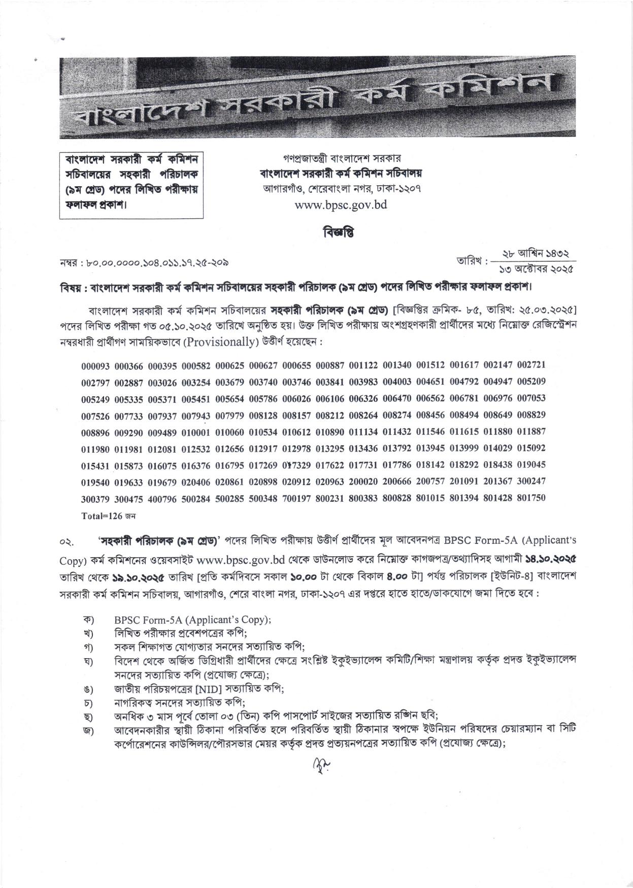 • মোট উত্তীর্ণ প্রার্থী: ১২৬ জন