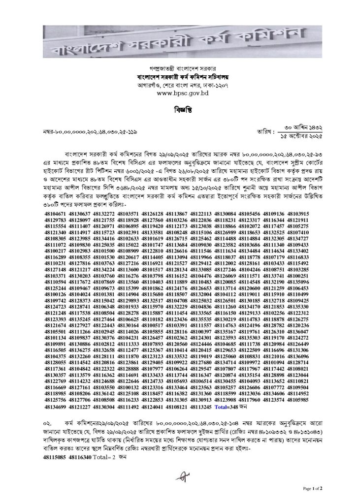৪৮তম বিসিএস সহকারী সার্জন সংরক্ষিত পদের ফলাফল সংক্রান্ত সম্পূর্ণ বিজ্ঞপ্তি দেখুন