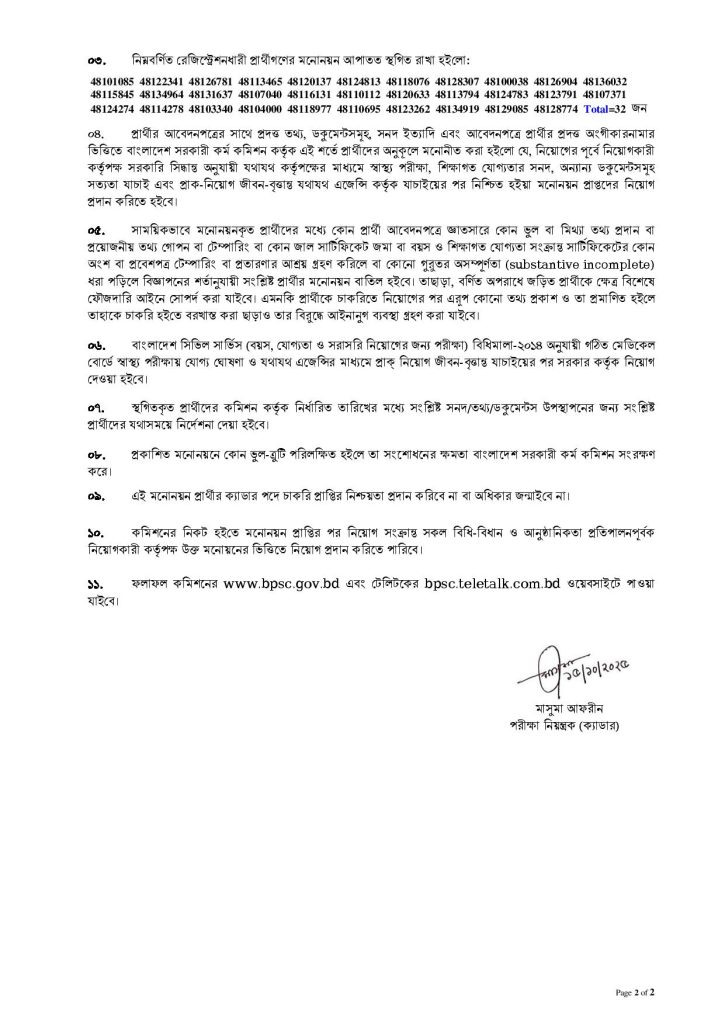 - স্বাস্থ্য পরীক্ষায় উপযুক্ত ঘোষণা ও জীবনবৃত্তান্ত যাচাইয়ের পর আনুষ্ঠানিকভাবে নিয়োগ প্রদান করা হবে।